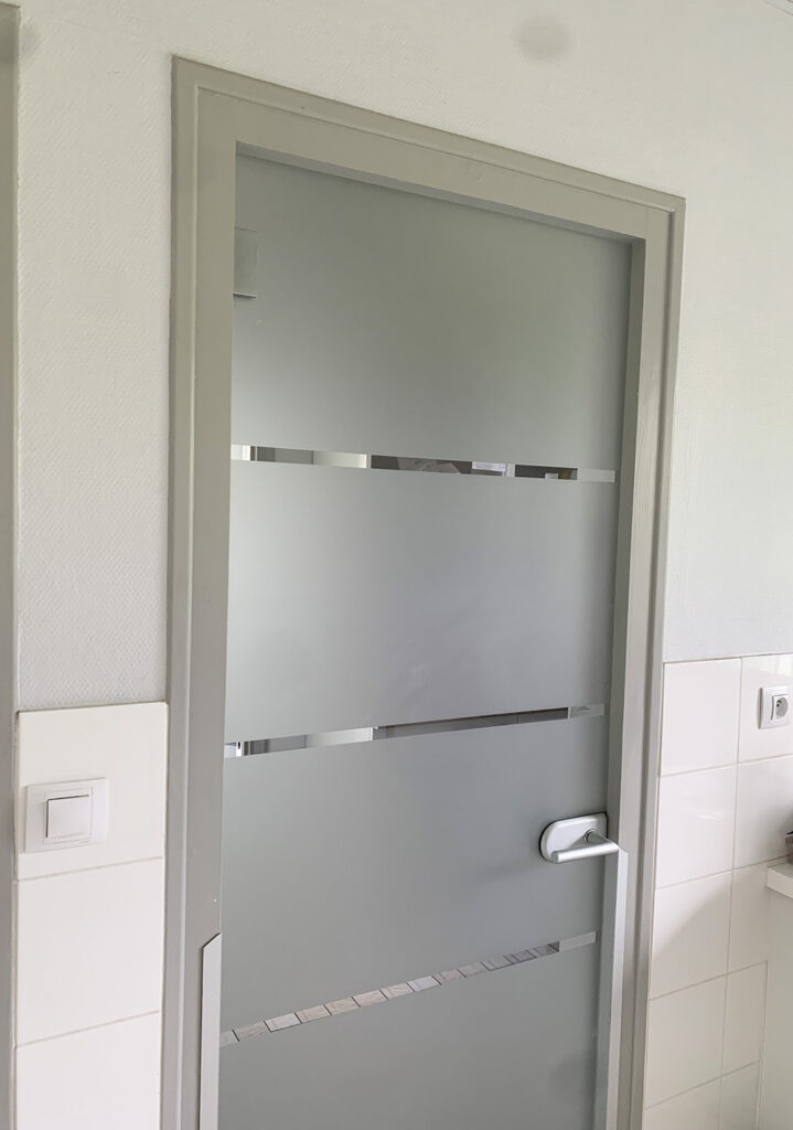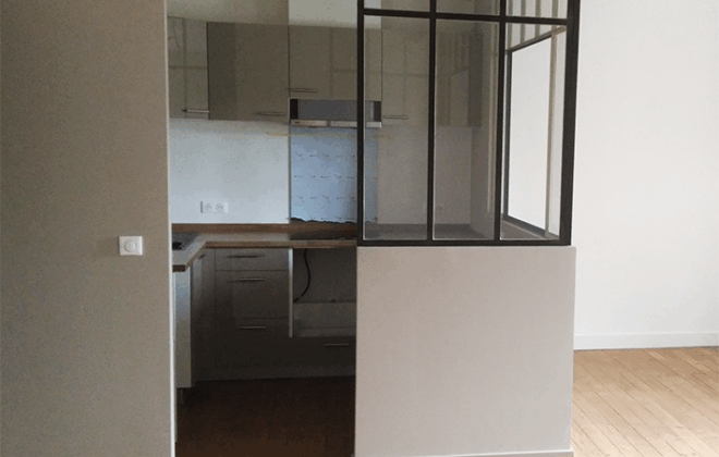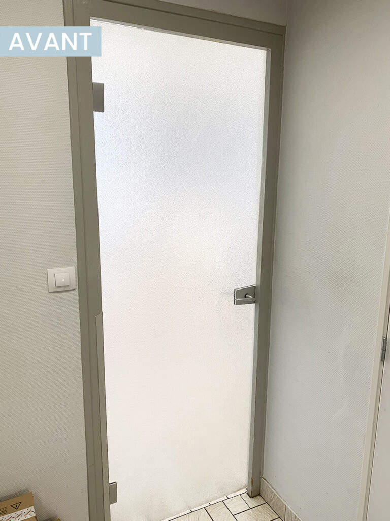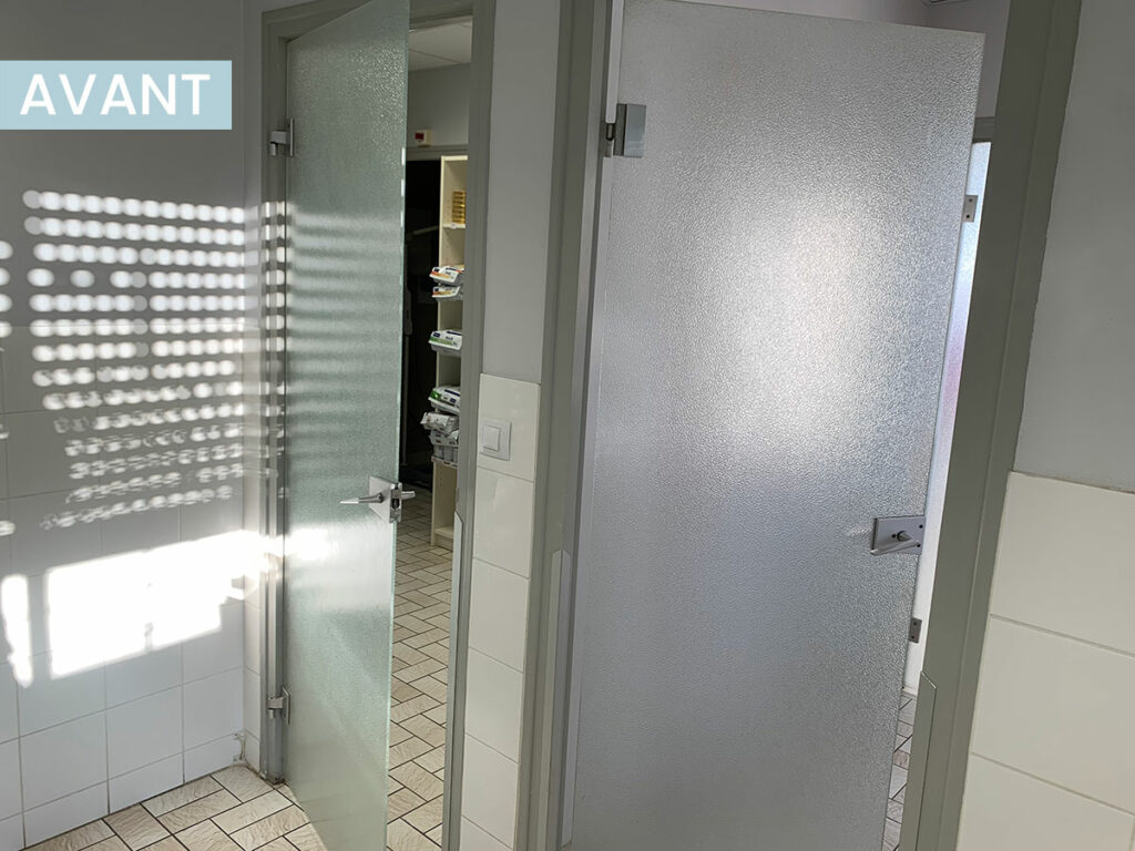 Le verre granité et la quincaillerie usagée ont était remplacé par des portes en verre dépoli à l’aspect plus moderne et un entretien plus aisé tout en conservant le dormant bois d’origine des portes et évité ainsi des travaux plus invasifs.